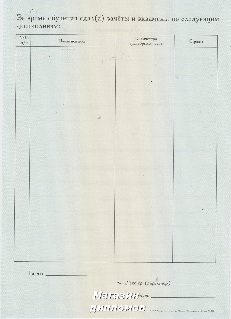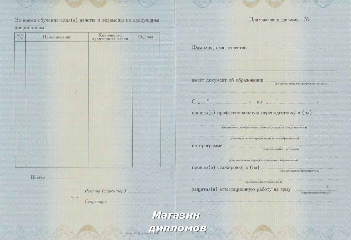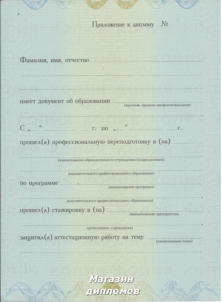 Диплом о профессиональной переподготовке (Гознак, МПФ, Москва 2010 год.), выдавался с 2010 года по 2013 ГОД.